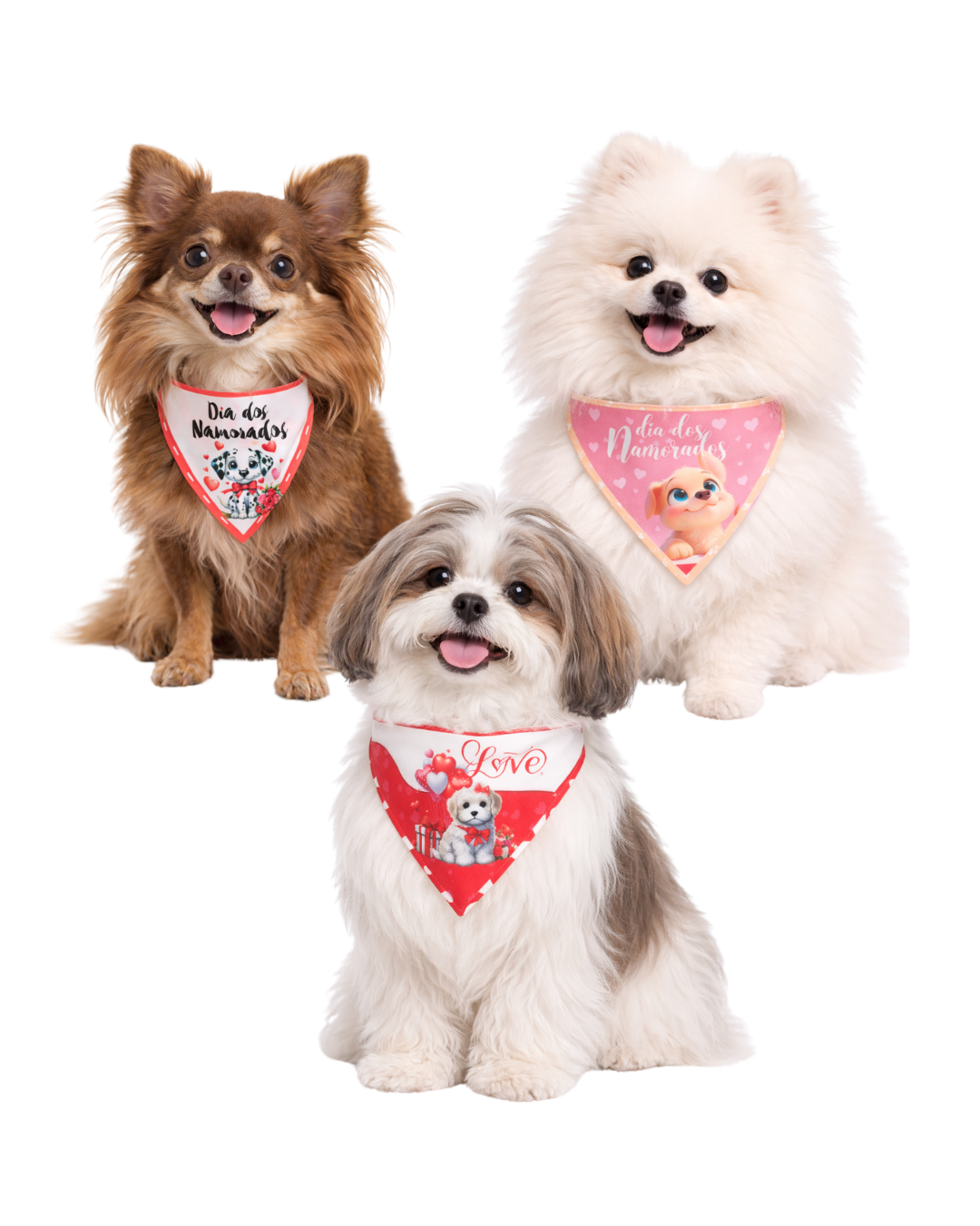 Bandana pet temática Dia dos Namorados, perfeita para deixar seu cachorro ainda mais fofo em fotos e momentos especiais.