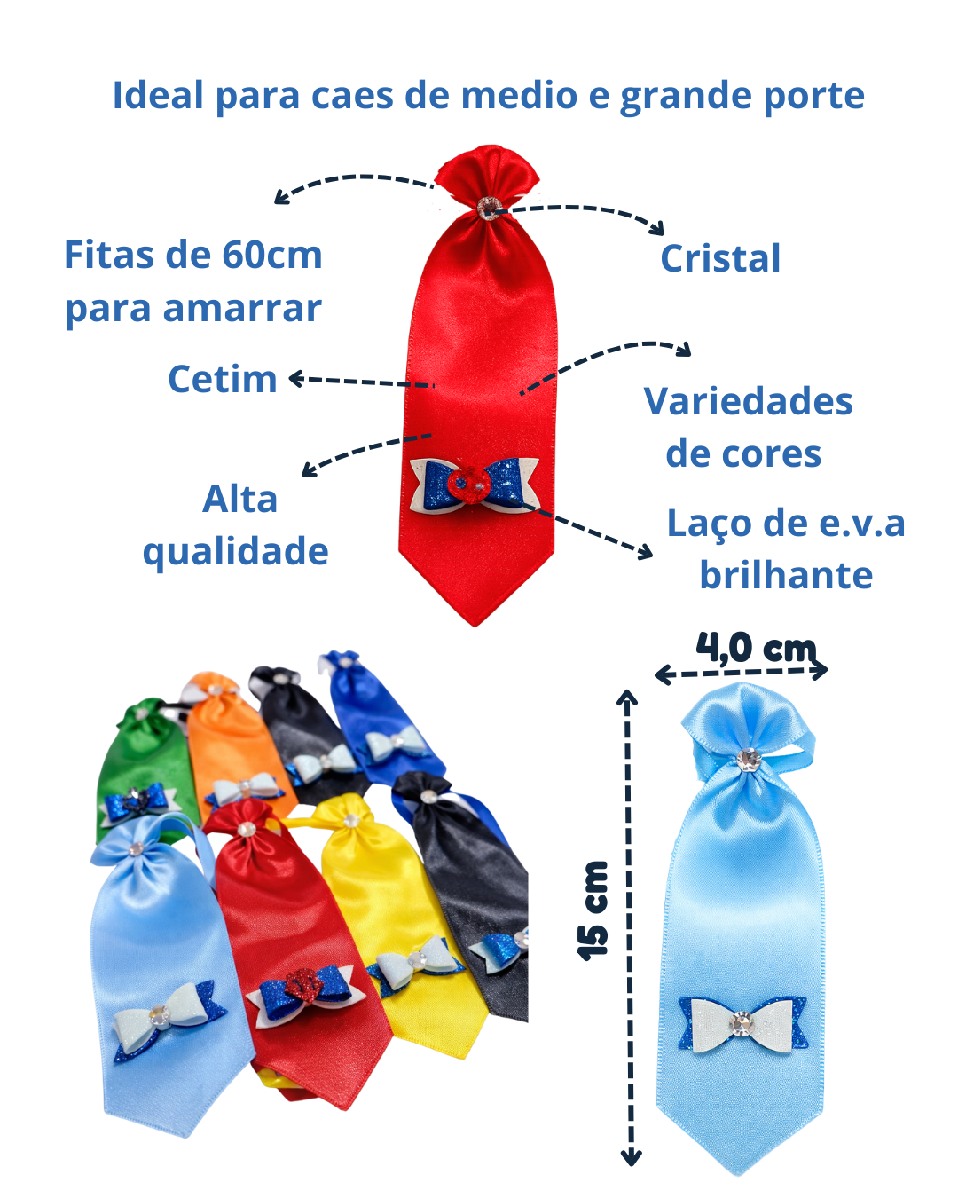 Deixe seu pet ainda mais elegante com nossas gravatas para cachorro em cetim com laço de EVA e cristal. Um acessório sofisticado que combina conforto, estilo e qualidade para destacar o visual do seu pet.
