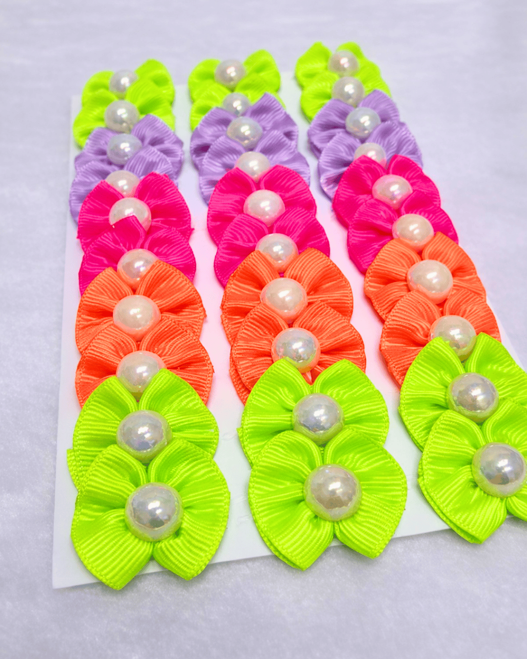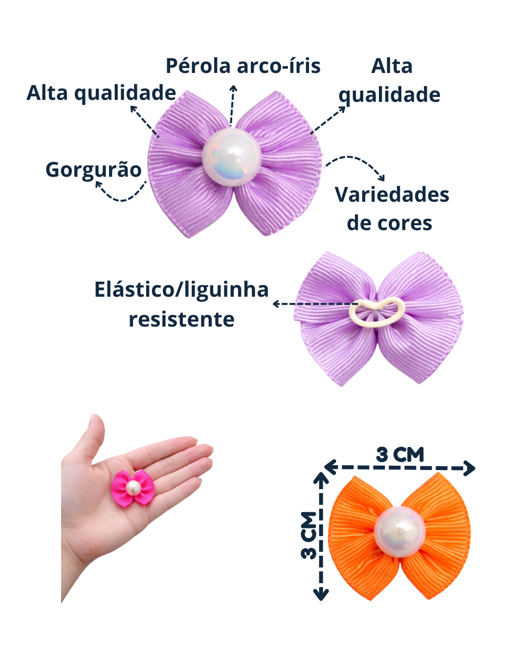 - Laços delicados com aplicação de pérola arco-íris 💎