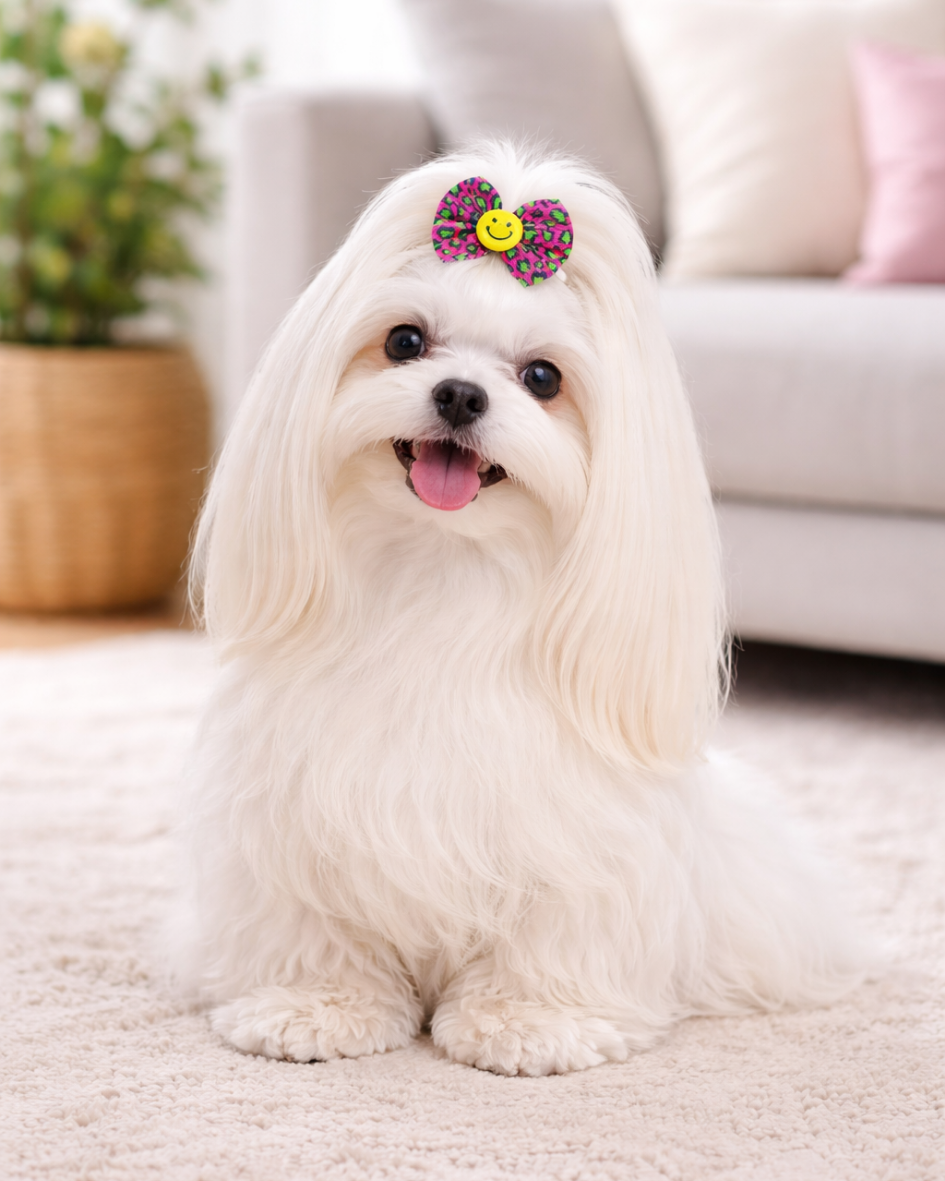 Deixe seu pet ainda mais fofo e estiloso com esses lindos laços estampados animal print com carinha sorriso😊