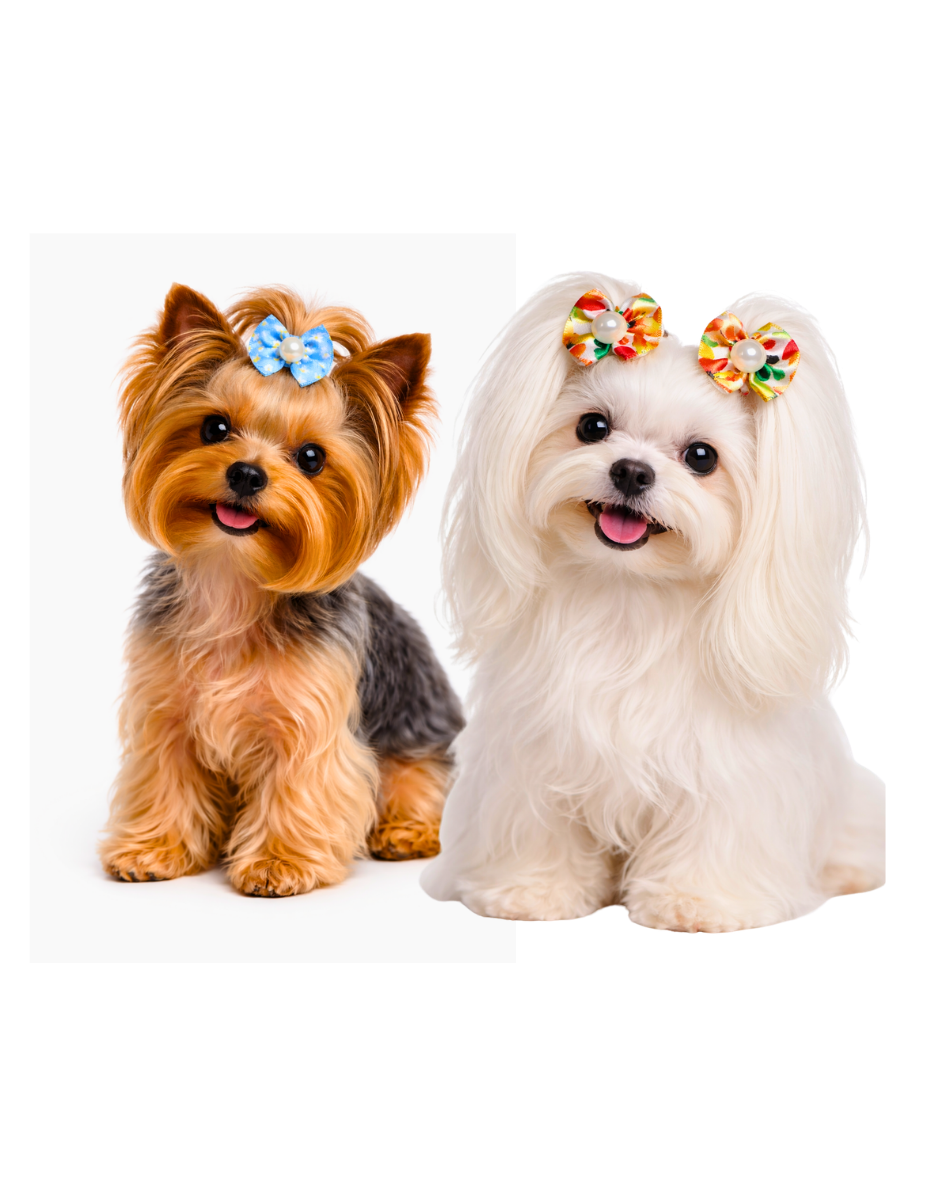 Deixe seu pet ainda mais elegante com esses lindos laços estampados com detalhe de pérola ✨