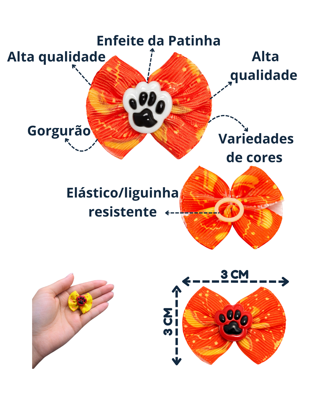 - Laços delicados com aplicação de patinha 🐾
